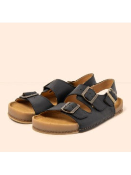 Sandales mixtes en cuir avec tannage végétal, les brides sur le dessus et derrière le talon sont réglables par scratch, ce qui permet un ajustement parfait